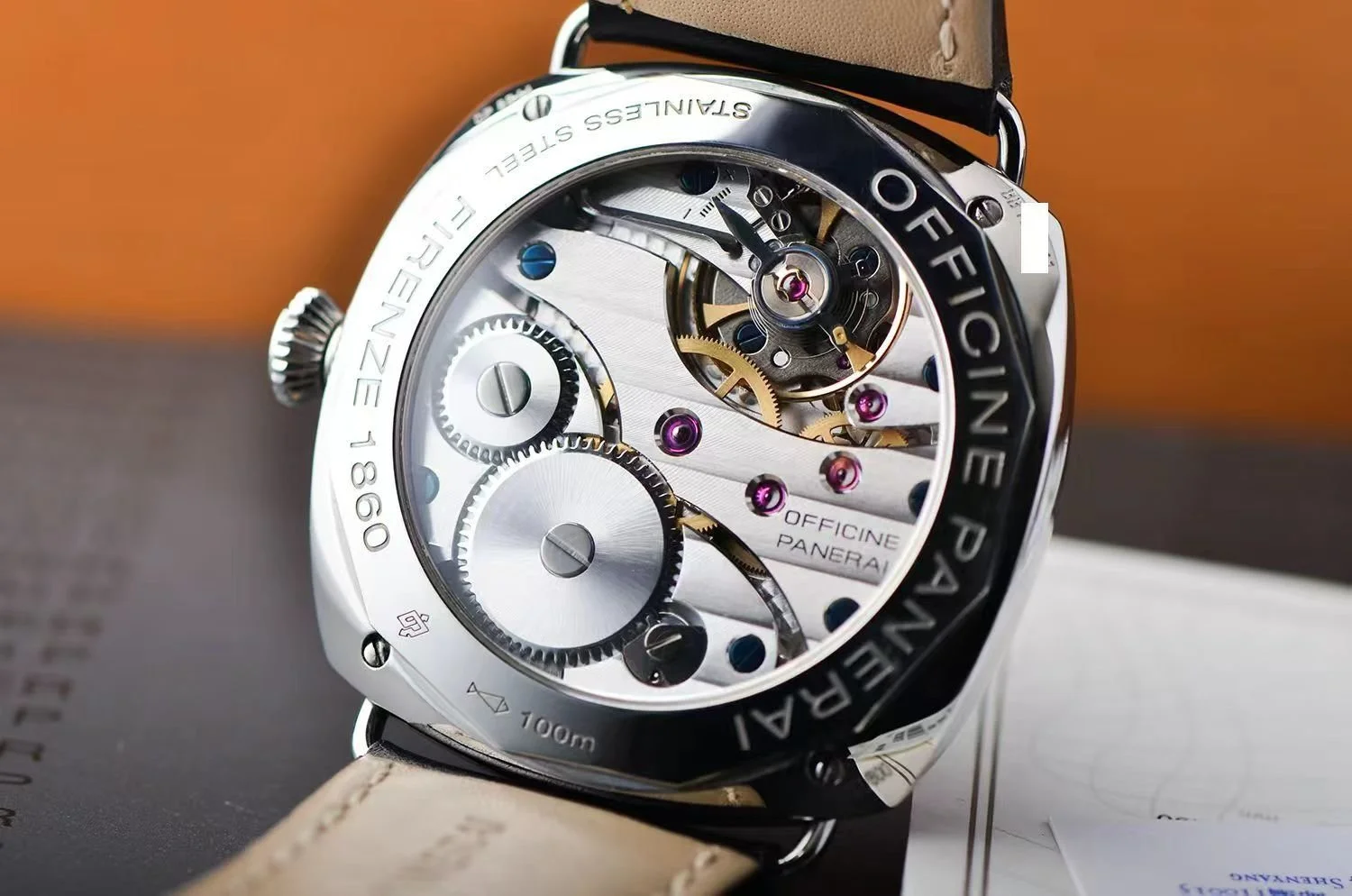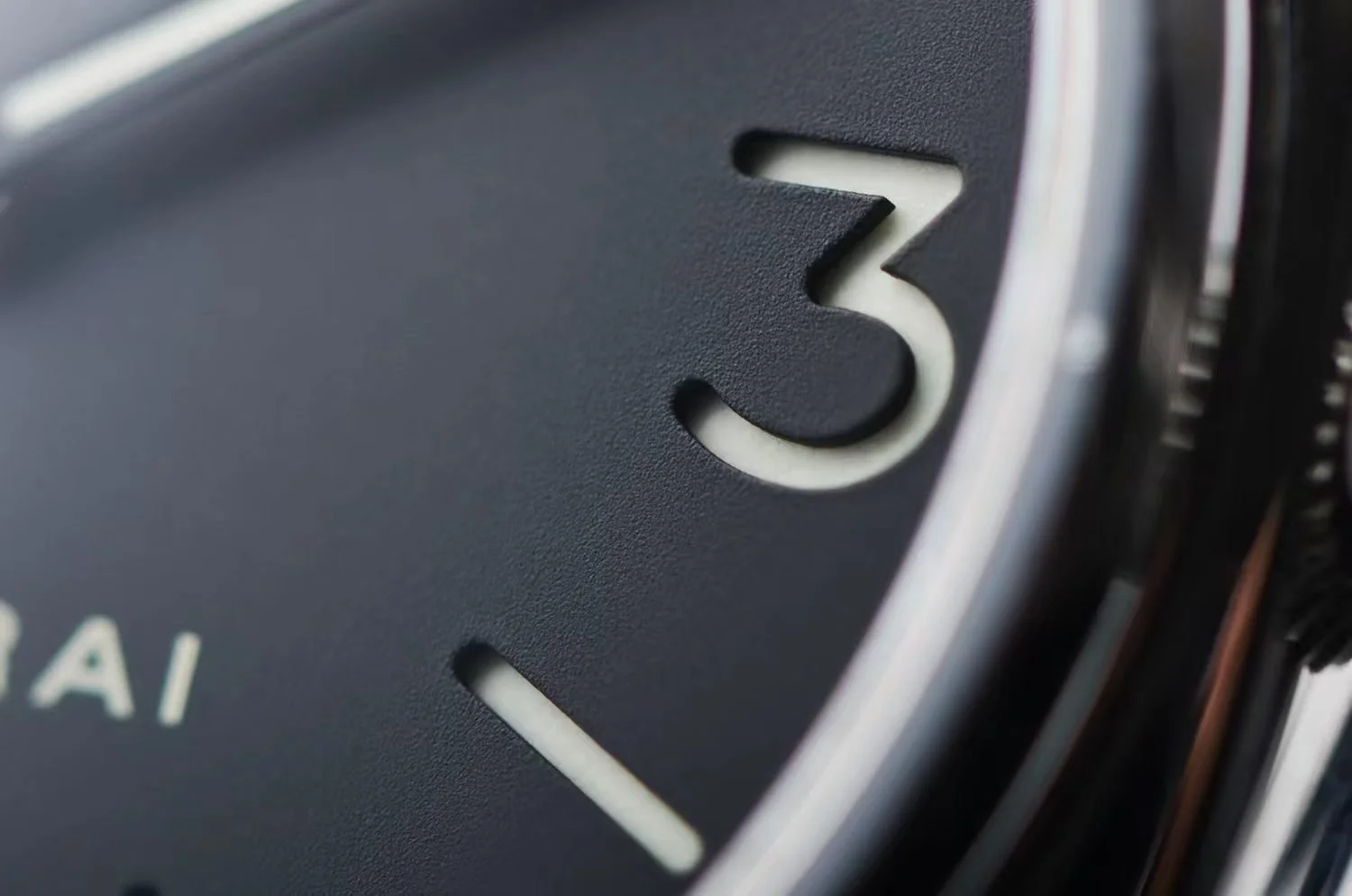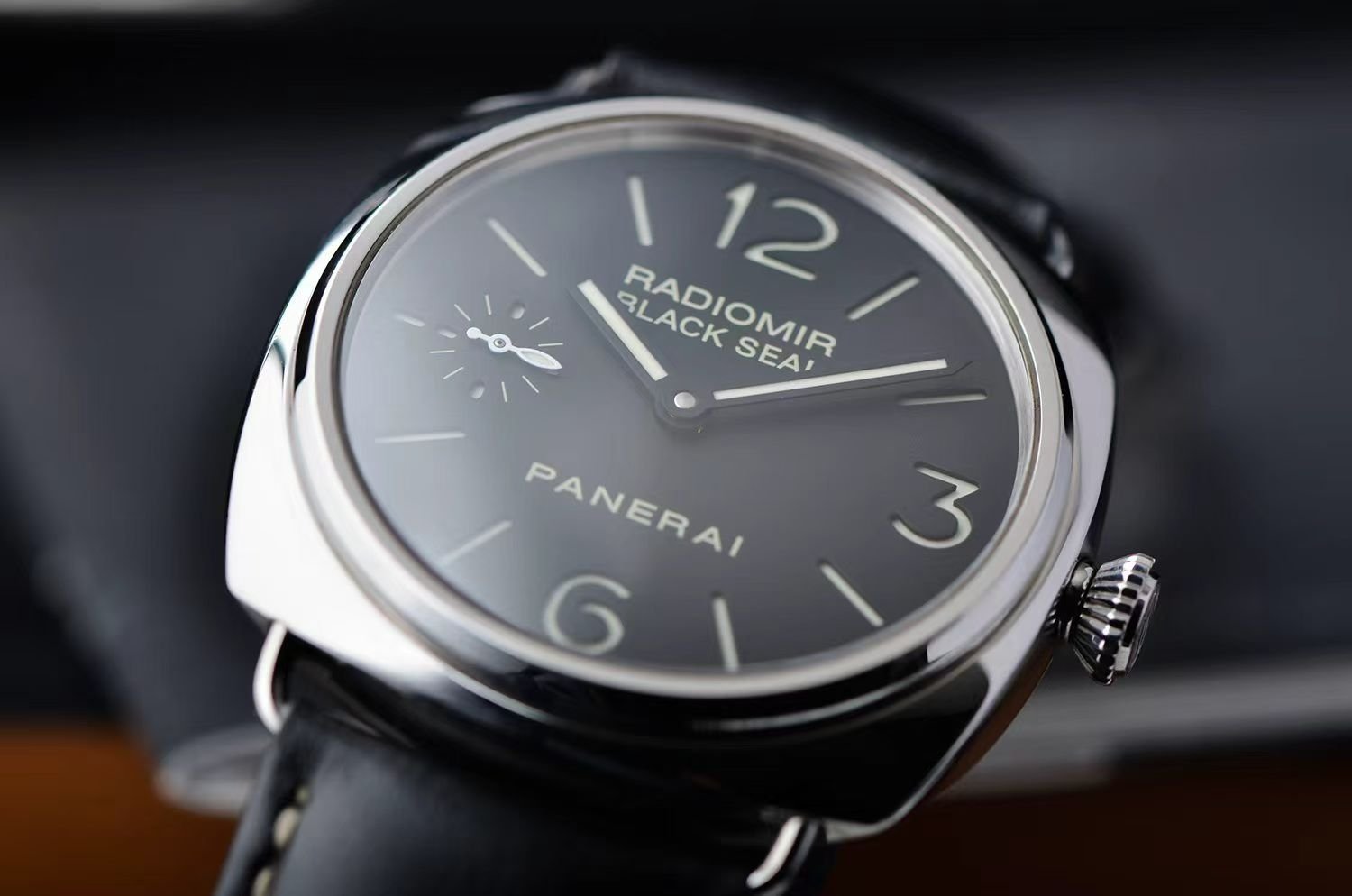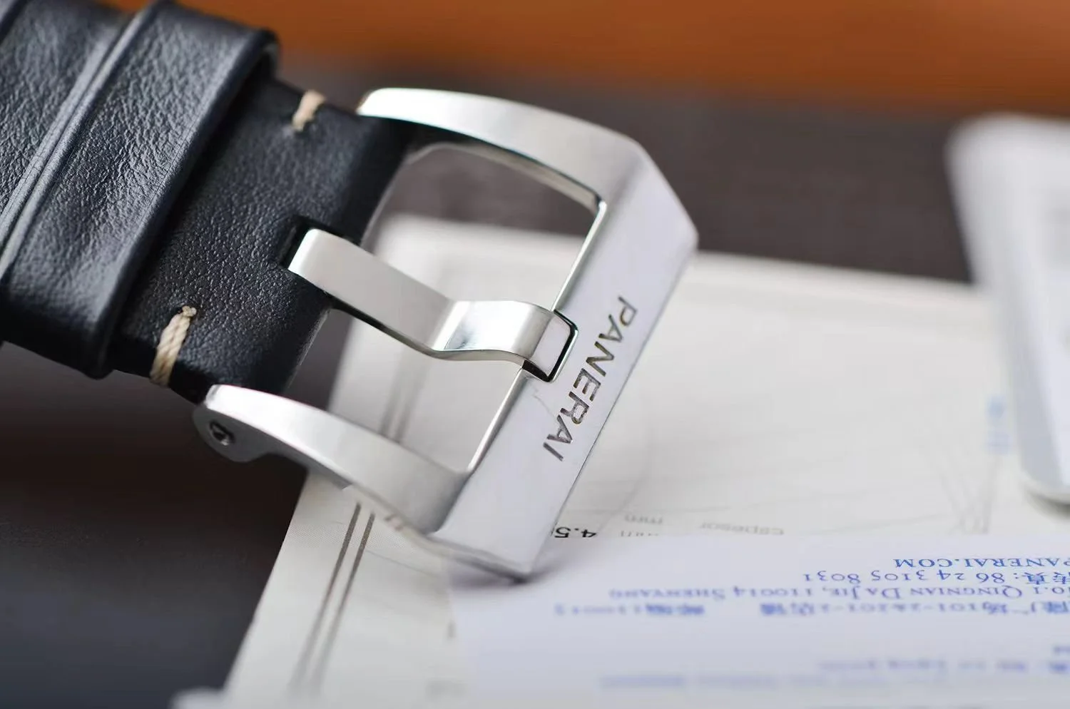 • Strap: Fitted with a high-quality aftermarket black leather strap and original Panerai steel buckle.